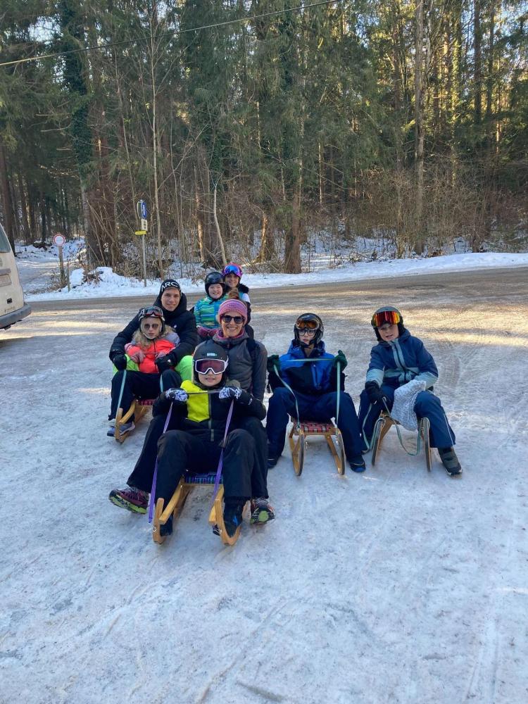 Im Verlauf des Turnunterrichts fuhren wir, die Klasse 3b, nach Münster zur Familienrodelbahn. Wir hatten eine Riesengaudi und flitzten ganze vier Mal die Rodelstrecke hinab. Auch dass wir unsere Rodeln wieder zum Start hinaufziehen mussten, machte uns nichts aus, denn mit dem Wind im Gesicht und fast so schnell wie ein Rennauto ist man ja auch nicht alle Tage unterwegs.